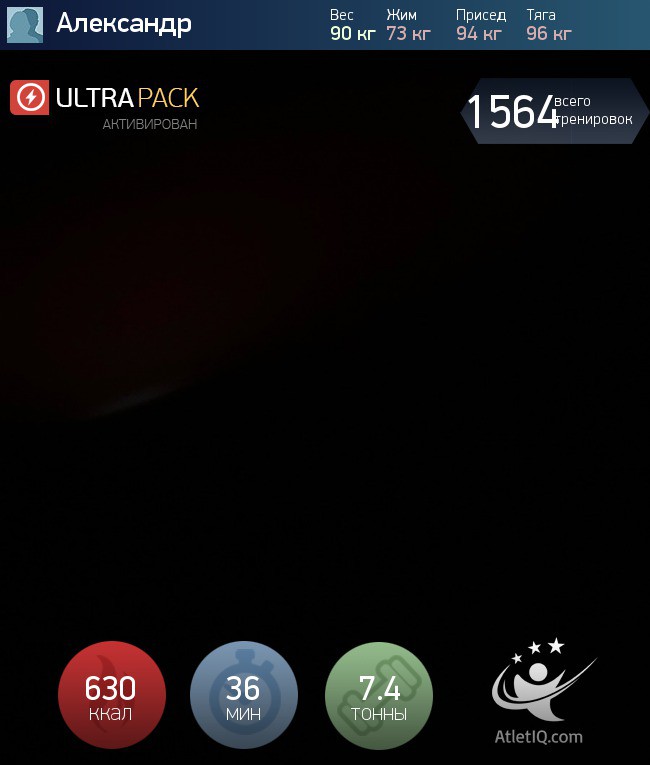 Нет времени тренироваться чаще 1 раза в неделю? Тяжелый спорт предлагает решение — «держим» мышцы тренировочным объемом. Уменьшая количество недельных тренировок, знай — следует сделать акцент на объеме и интенсивности тренинга. Используй мощнейшие многосуставные упражнения, дави «ацкой» силовой работой, удивляй свое тело, постоянно варьируя нагрузку — не дай своим мышцам «раствориться».Награда: