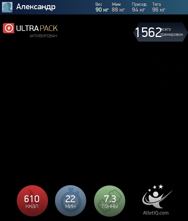 "I want to become giant!" With this thought you fall asleep and wake up, but the universe does not hurry to fulfill your wishes! No wonder: autosuggestion, of course is powerful thing, but workouts in the gym are much more effective. You can see this on your personal experience, having experienced a super-voluminous dumbbell program from AtletIQ!Goal: